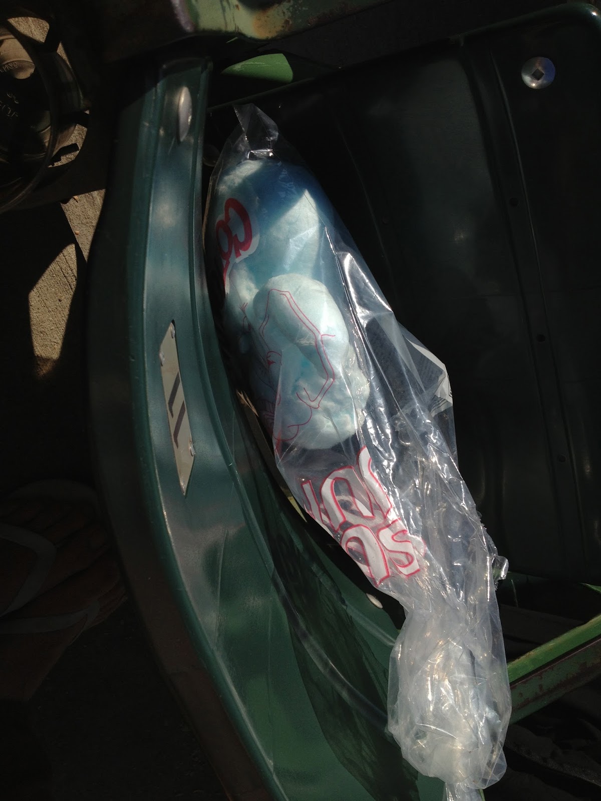 freezing up there. I almost died. Thankfully, we moved around a lot. Seriously. We didn’t all have seats together, so we kept moving around as other people claimed our seats. But we didn’t just move around within our section way up in the alps. Oh, no. After two innings up there, I took off with Peter for the blessedly sunny patio behind home plate, under the pretense of buying food. You may not be able to see the game out there, but it was positively lovely. When i went back for the guys, I found them huddled at the tippy top of the stadium. Jojo doesn’t get cold. I do. But he was